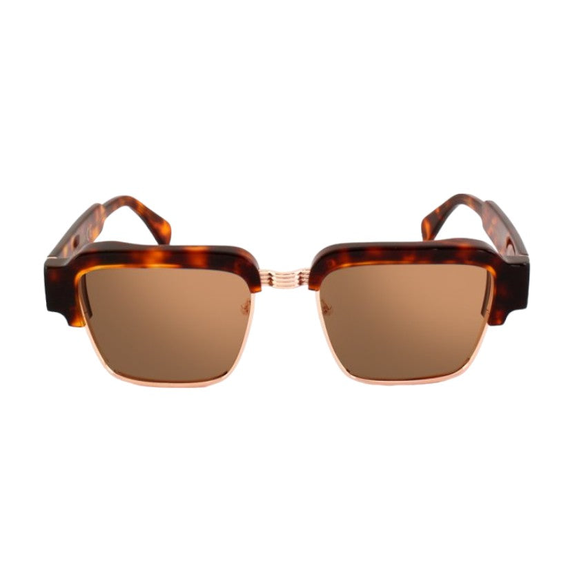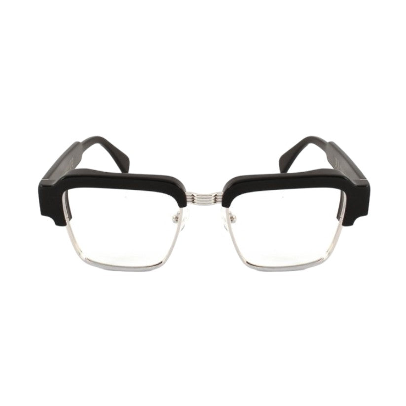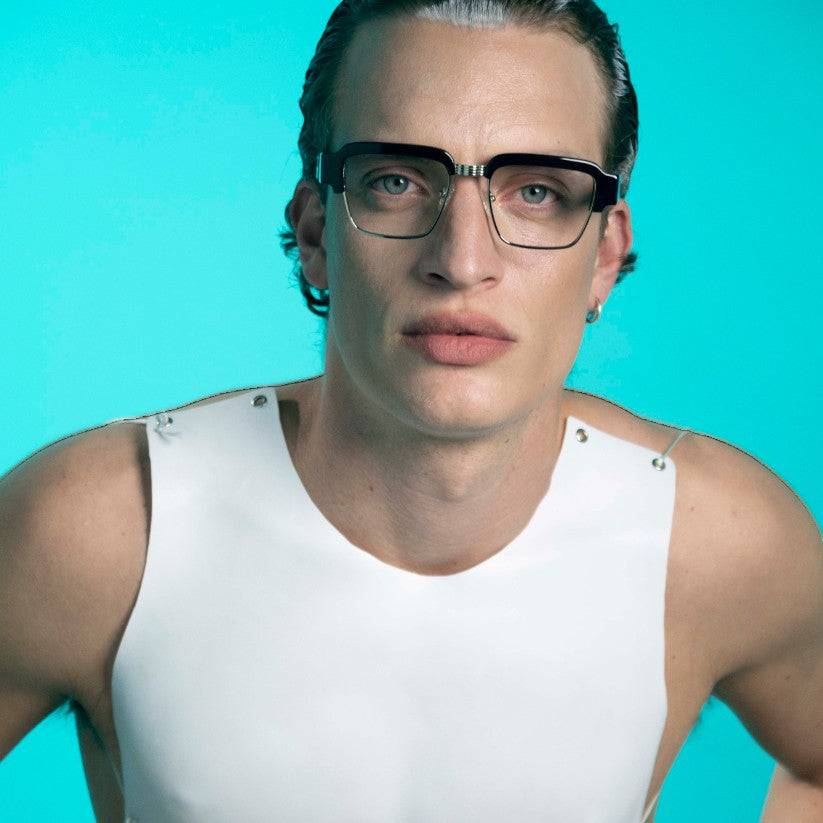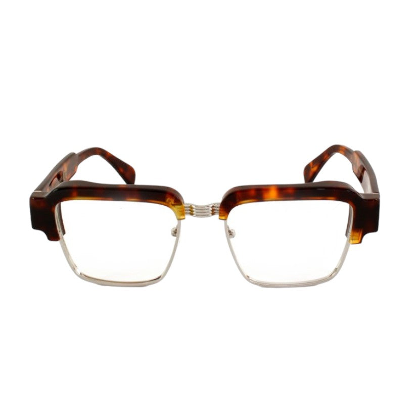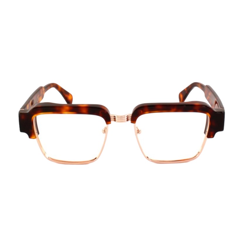 Optischer Rahmen aus pantographiertem Zelluloseacetat, einem robusten Material mit griffiger Haptik und gleichzeitig raffinierter optischer Präsentation. Der Rahmen der Brille besteht aus Zelluloseacetatplatten, die im Laufe der Zeit gealtert und getrommelt wurden, um ihnen Glanz und Glanz zu verleihen.