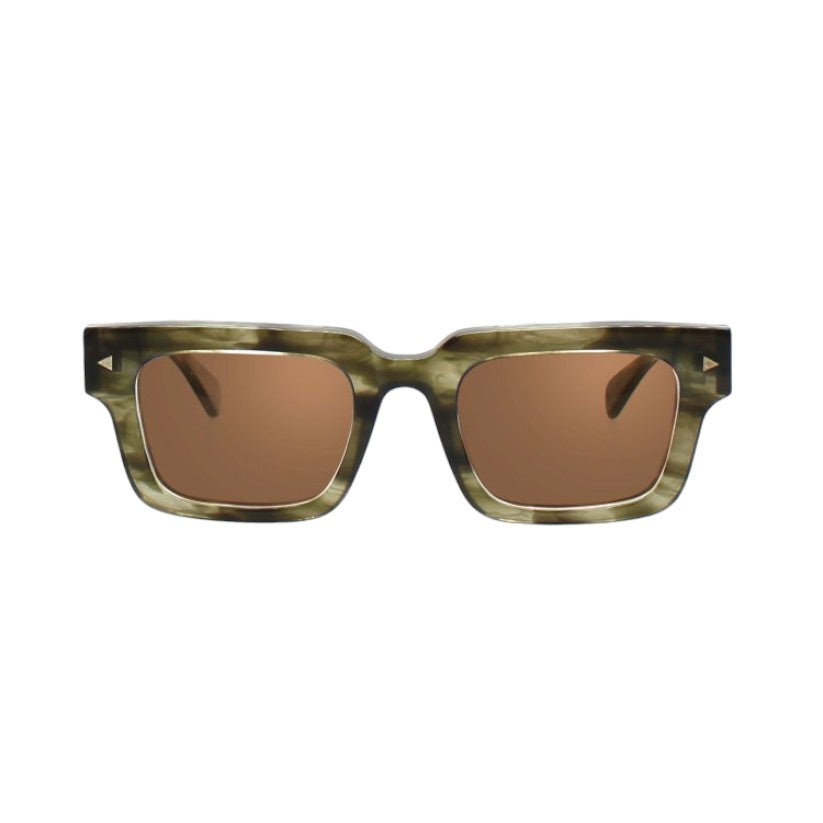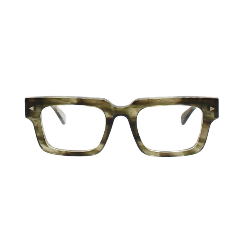 Brillen aus pantographiertem Zelluloseacetat, einem Material, das sich fest anfühlt und gleichzeitig eine raffinierte visuelle Präsentation bietet. Der Rahmen der Brille besteht aus Zelluloseacetatplatten, die im Laufe der Zeit gealtert und getrommelt wurden, um ihnen Glanz und Glanz zu verleihen.