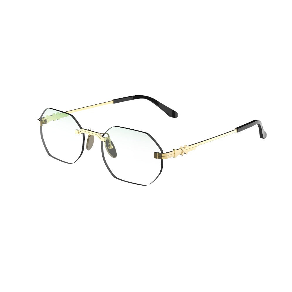 Rimless sunglasses with metal temples and details, with a contemporary design. Sunglasses with high quality lenses for HD vision without reflections.