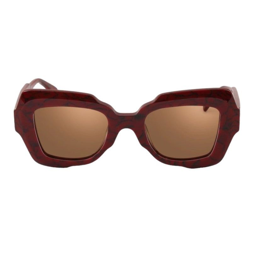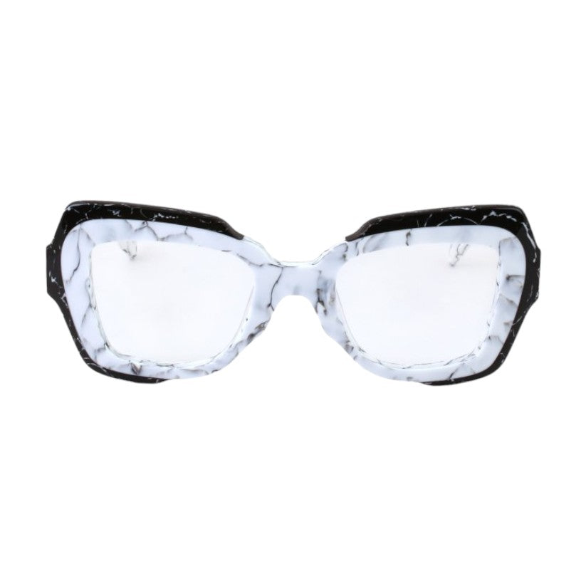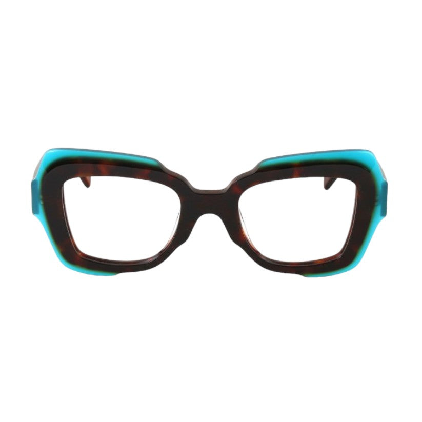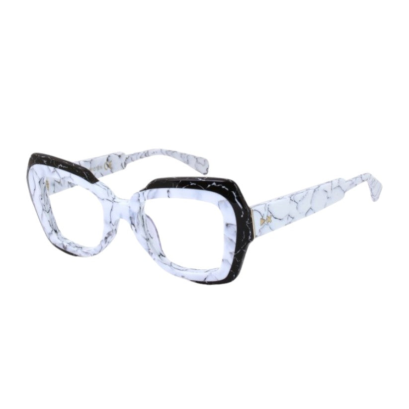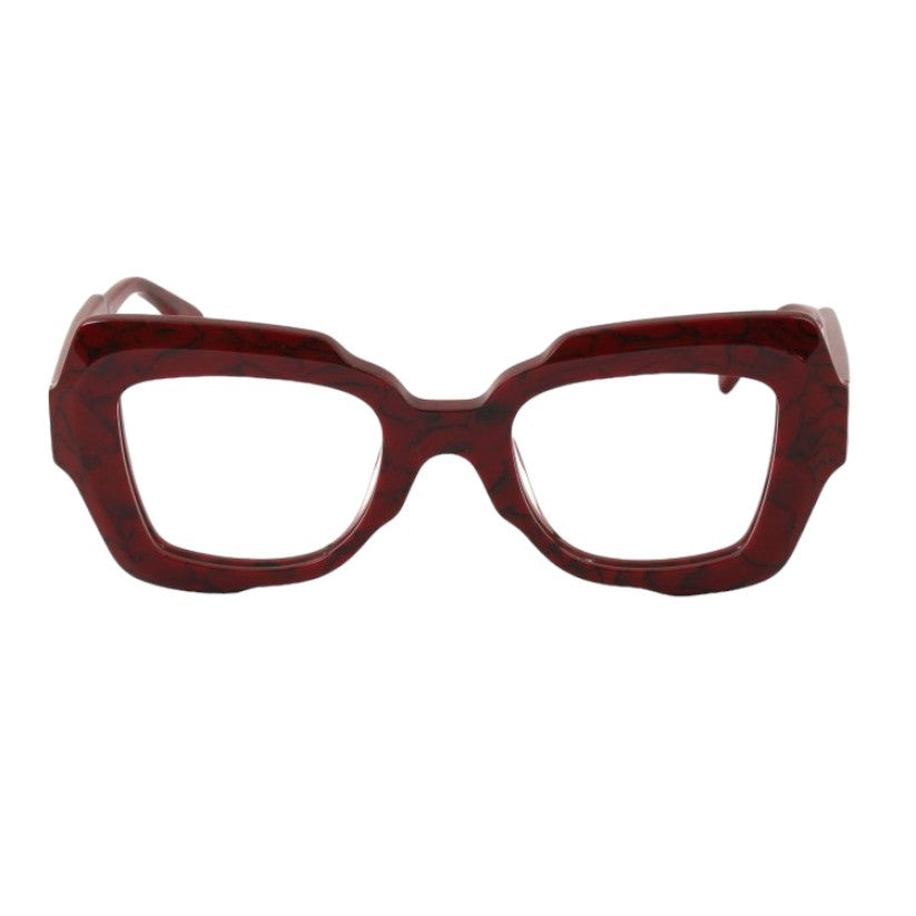 Eyeglasses in pantographed cellulose acetate, a material that is solid to the touch and at the same time has a refined visual presentation. The frame of the glasses is made from cellulose acetate sheets seasoned over time and tumbled to make them shiny and shiny.
