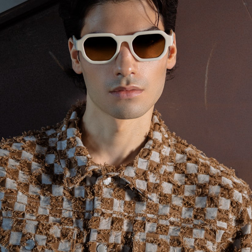 Sunglasses in pantographed cellulose acetate, a material that is solid to the touch and at the same time has a refined visual presentation. The frame of the glasses is made from cellulose acetate sheets seasoned over time and tumbled to make them shiny and shiny. Material generally used by the best brands in the sector.