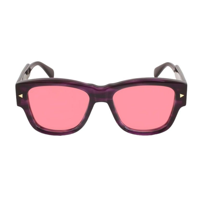 Sunglasses in pantographed cellulose acetate, a material that is solid to the touch and at the same time has a refined visual presentation. The frame of the glasses is made from cellulose acetate sheets seasoned over time and tumbled to make them shiny and shiny. Material generally used by the best brands in the sector.