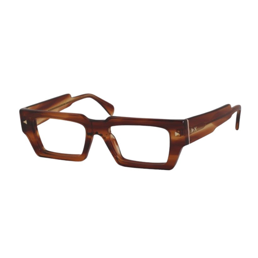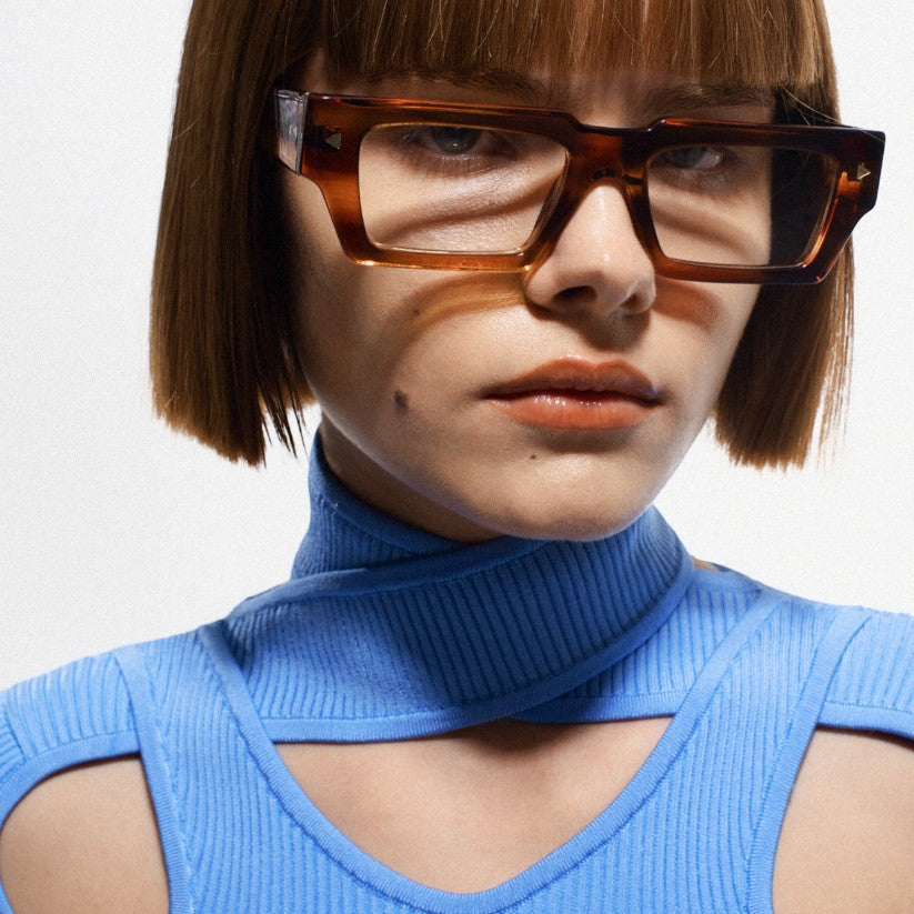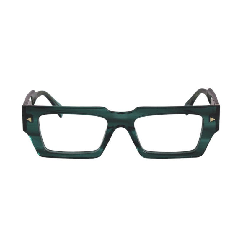 Montatura da vista in acetato di cellulosa pantografata , materiale solido al tatto e nello stesso tempo di raffinata presentazione visiva . La montatura degli occhiali viene ricavata da lastre di acetato di cellulosa stagionate nel tempo e burattate per renderle lucide e brillanti.