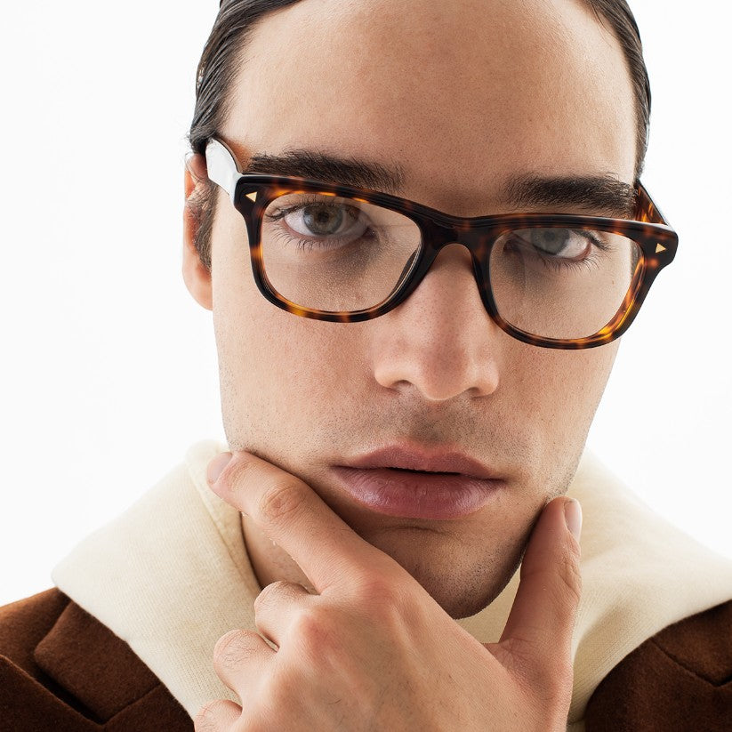 Montatura da vista in acetato di cellulosa pantografata , materiale solido al tatto e nello stesso tempo di raffinata presentazione visiva . La montatura degli occhiali viene ricavata da lastre di acetato di cellulosa stagionate nel tempo e burattate per renderle lucide e brillanti.